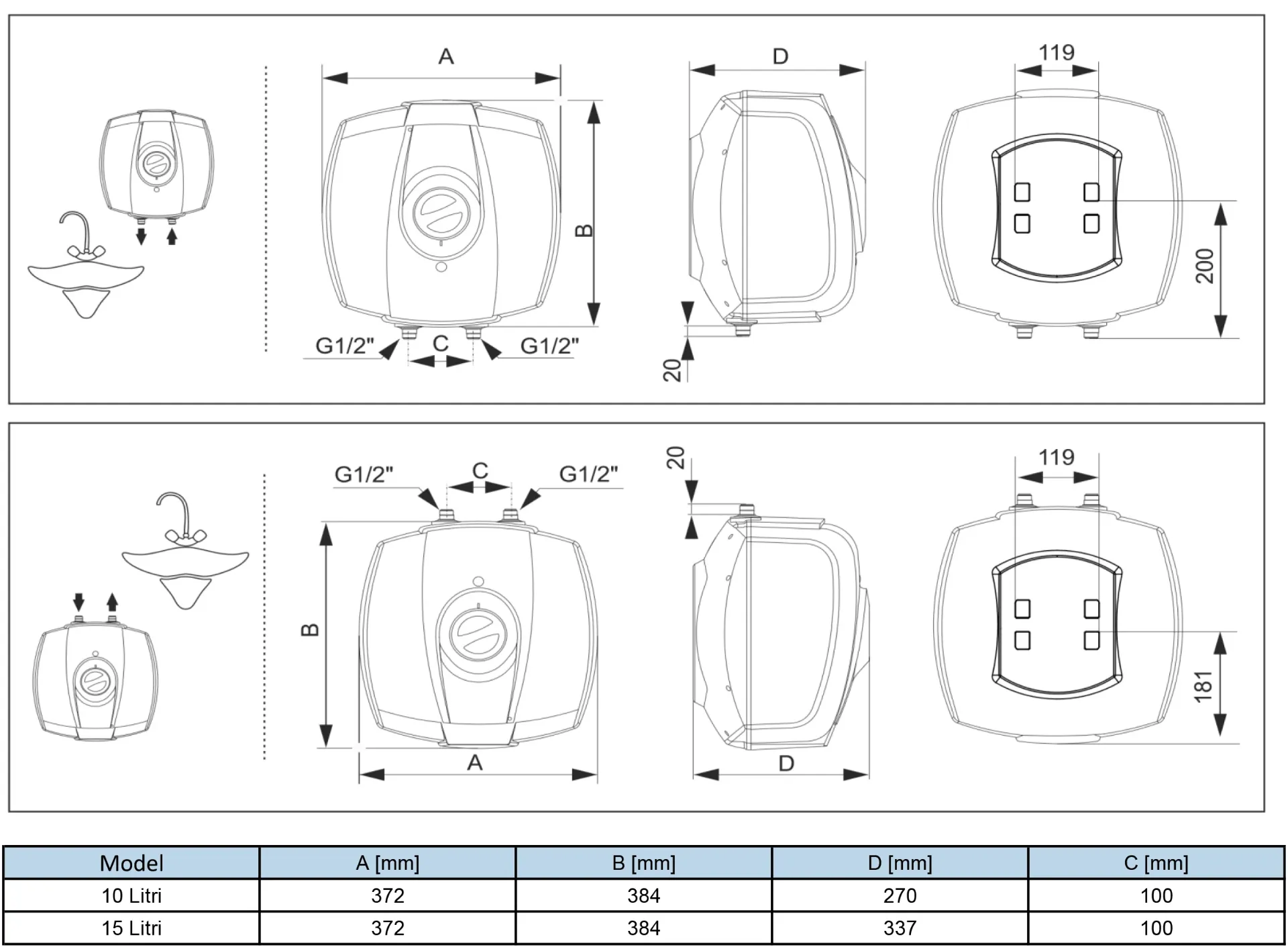 Boilerele electrice de capacitate mică au dimensiuni compacte fiind ușor de manevrat.