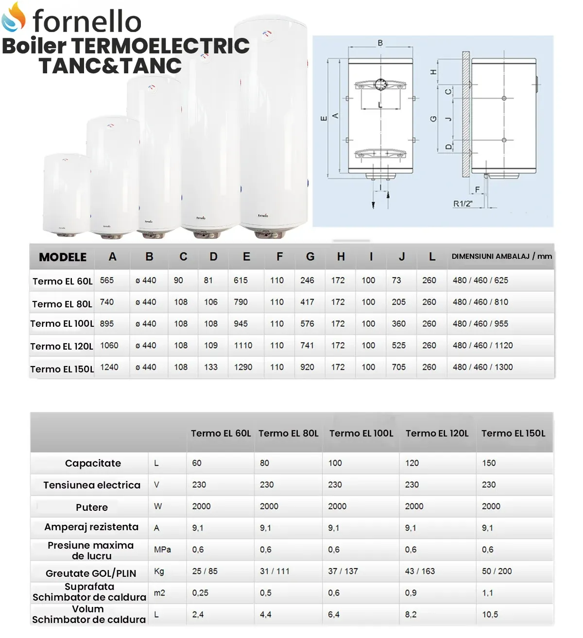 - Carcasa este metalică și boilerul are protecție anticalcar.