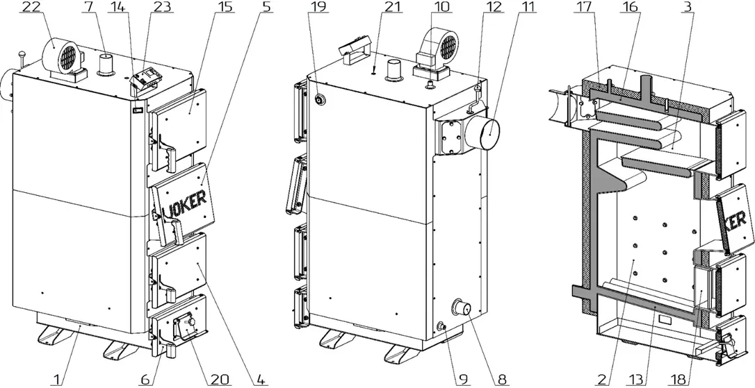 - JOKER este potrivit pentru utilizarea diferitelor tipuri de combustibili solizi, inclusiv tăierea grosieră a lemnului, brichete, turbă de gazon și cărbune de diferite fracțiuni.