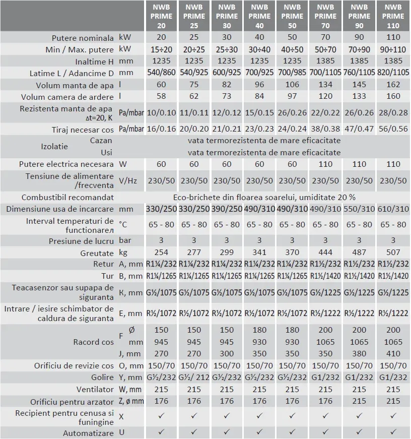 Cazanul pe combustibil solid, 40 kW, cu ventilator, NWB PRIME 40, BURNiT este destinat pentru încălzirea încăperilor mari și medii, pentru sisteme de încălzire centrală în clădiri rezidențiale, comerciale sau industriale, unde necesarul de căldură nu depășește 40 kW. Este un cazan din tablă de oțel echipat cu o unitate de control, controler TECH inteligent, plus dotat cu un ventilator pentru creșterea performanței și pentru circulația forțată a aerului. Cazanul NWB PRIME 40, BURNiT a fost proiectat și format pentru a se adapta la arderea lemnului de foc, brichetelor din lemn și cărbunelui. Pe lângă acestea - ținând cont de cele mai moderne soluții, dacă adăugați un arzător de peleți ca accesoriu suplimentar, îl puteți folosi ca un cazan pe peleți.