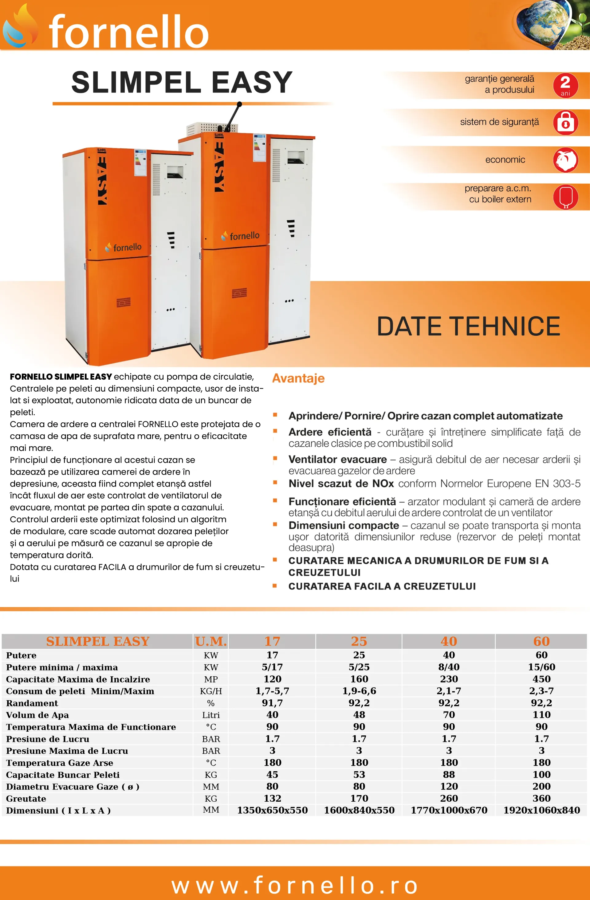 Mulțumită dotărilor sale, Fornello Slimpel Easy este o centrală care va depăși așteptările. Datorită automatizării complexe se obține un extra confort: